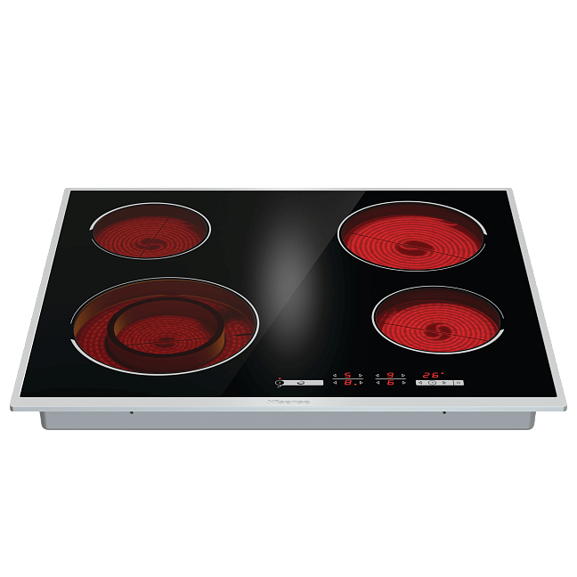 Современные стеклокерамические варочные панели — это не только стильный аксессуар на вашей кухне, но и чрезвычайно быстрый помощник при приготовлении пищи в посуде любого размера. Легкая в уходе поверхность позволяет без труда вытирать убежавшую жидкость, а индикаторы остаточного тепла покажут, какие конфорки еще горячие, чтобы вы не обожглись, прикоснувшись к горячей поверхности.