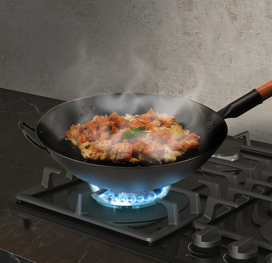 Конструкция рассекателя обеспечивает мощный и равномерный нагрев по всей поверхности вока. Это позволяет быстро готовить большие порции, идеально прожаривая ингредиенты с сохранением их сочности.