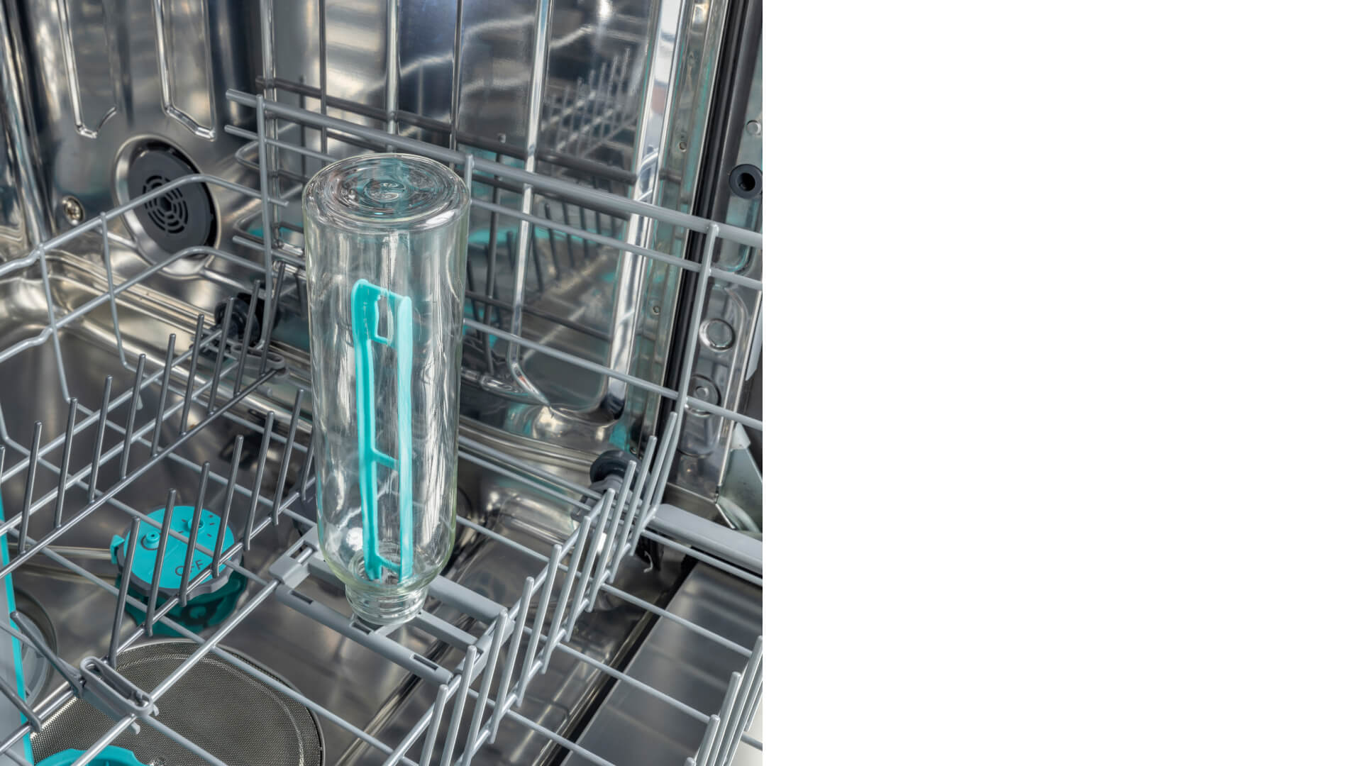 Благодаря системе направленной подачи воды, расположенной под разбрызгивателем, вода легко проникает в труднодоступные места в бутылках и удаляет стойкие загрязнения и остатки пищи без следа. Результат — гигиеническая чистота благодаря новейшим технологиям.