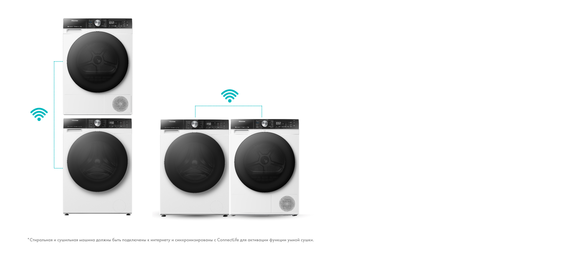 Стиральная машина Hisense автоматически передает сушильной машине информацию о цикле стирки*, для того чтобы вовремя включить предварительный нагрев и выбрать оптимальные настройки цикла сушки.
