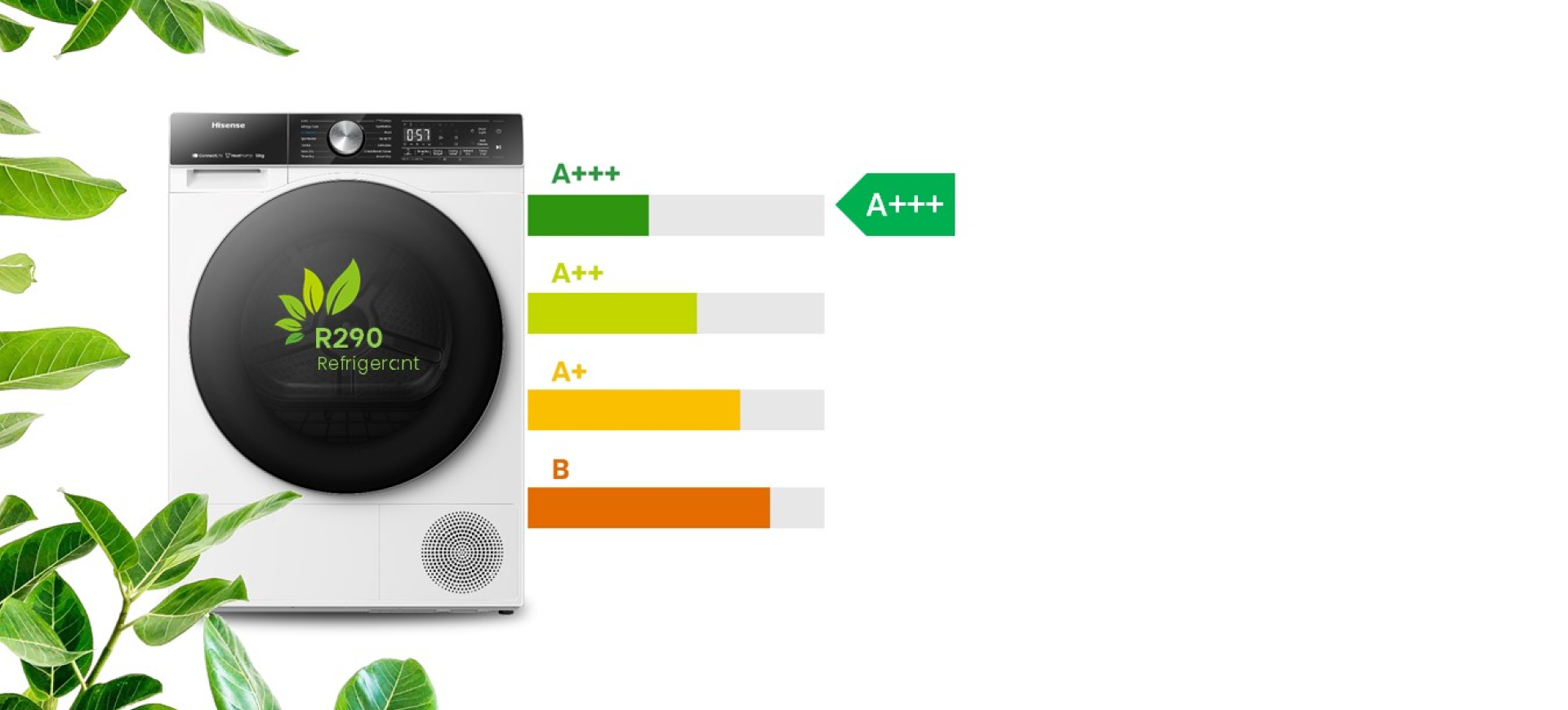 Сушильная машина серии 5S с хладагентом R290 имеет более низкий индекс потенциала глобального потепления, чем с R134a*. Это сокращает суммы счетов за электроэнергию и способствует защите окружающей среды.