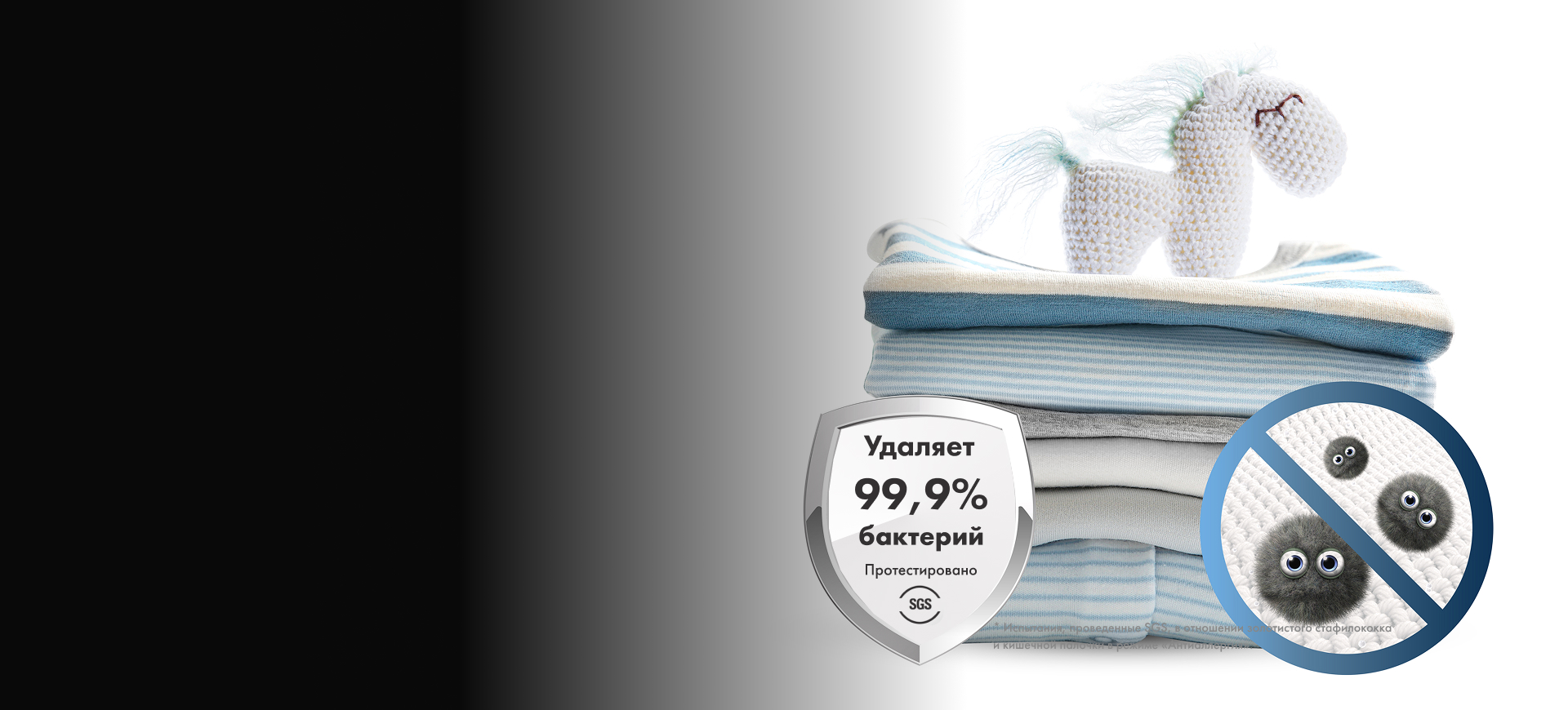 Программа «Антиаллергия» дезинфицирует одежду горячим воздухом, эффективно уничтожая 99,99%* вредных бактерий, включая кишечную палочку и золотистый стафилококк. Это гарантирует безупречную чистоту вашей одежды без снижения качества сушки.