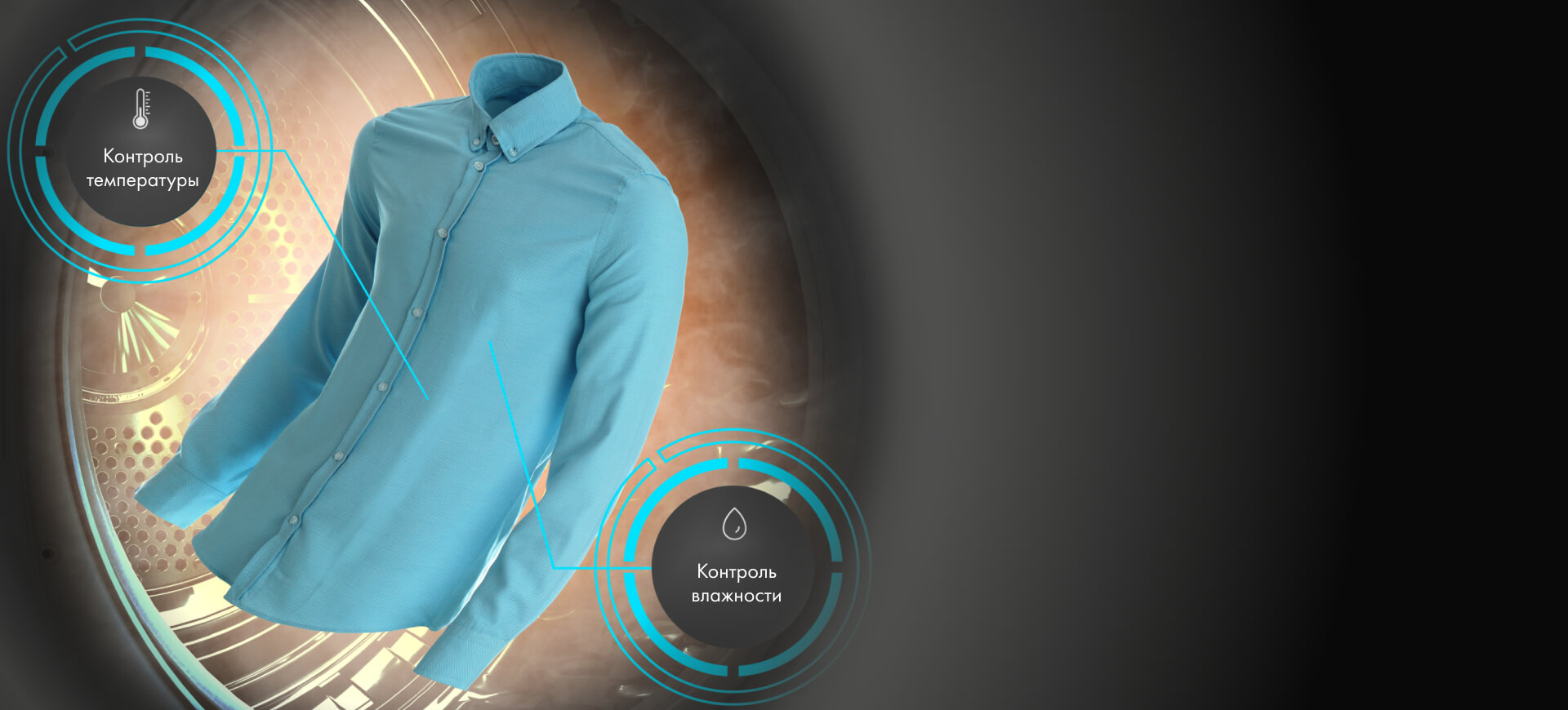 Сушильная машина оснащена двумя высокоточными датчиками, которые отслеживают остаточную влажность и температуру белья. На основе этих данных машина автоматически корректирует время сушки. Это предотвращает пересушивание и повреждение волокон ткани из-за излишнего нагрева, помогая вашей одежде служить дольше.