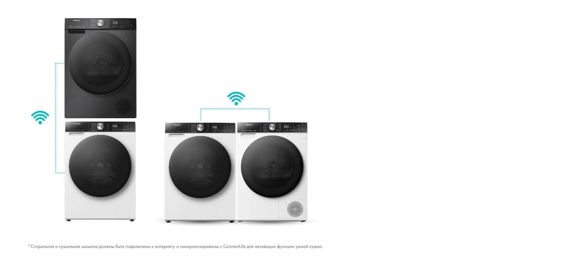 Стиральная машина Hisense автоматически передает сушильной машине информацию о цикле стирки*, для того чтобы вовремя включить предварительный нагрев и выбрать оптимальные настройки цикла сушки.