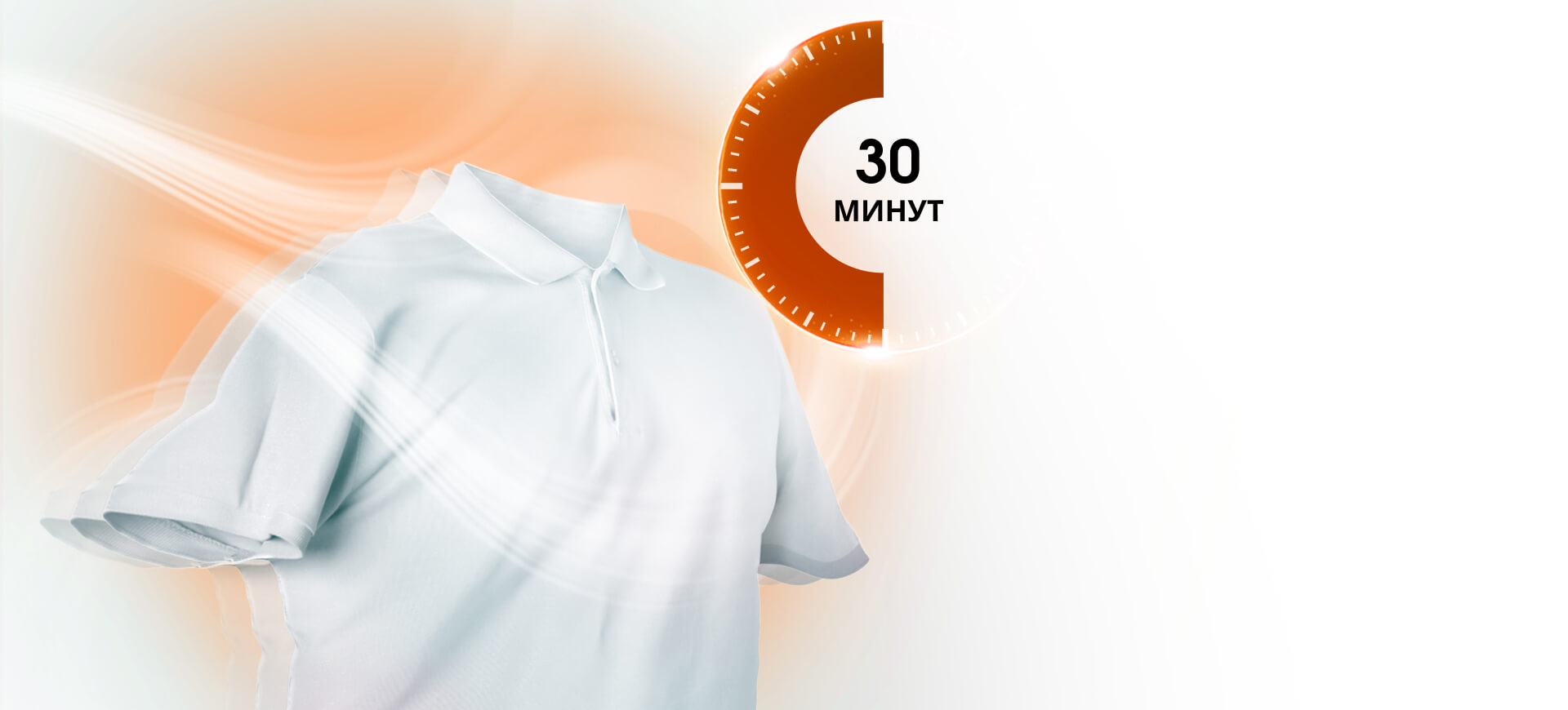 Нужно быстро высушить любимую футболку? Специально для таких случаев предусмотрели программу сушки для небольшого количества белья, которая экономит время и энергию. Всего за 30 минут вы получите такие же результаты, как и при обычной сушке.