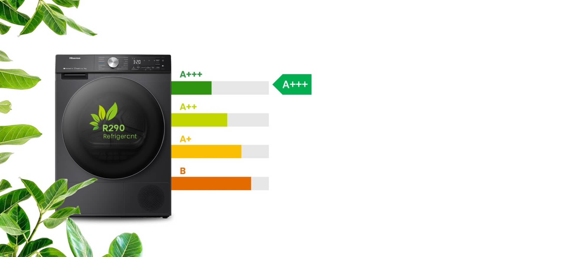 Сушильная машина серии 5S с хладагентом R290 имеет более низкий индекс потенциала глобального потепления, чем с R134a*. Это сокращает суммы счетов за электроэнергию и способствует защите окружающей среды.