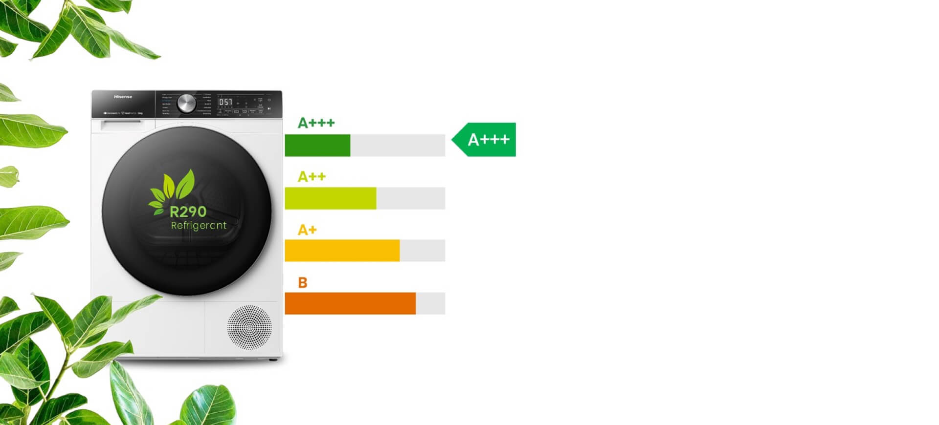 Сушильная машина серии 5S с хладагентом R290 имеет более низкий индекс потенциала глобального потепления, чем с R134a*. Это сокращает суммы счетов за электроэнергию и способствует защите окружающей среды.