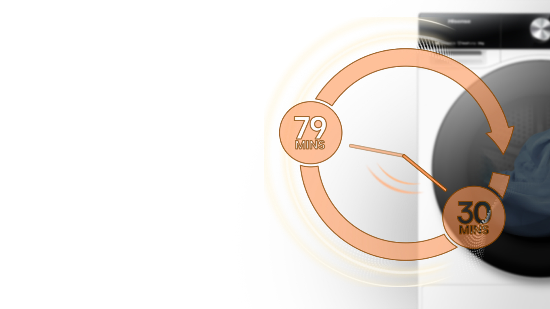 Нужно быстро высушить любимую футболку? Специально для таких случаев предусмотрели программу сушки за 30 минут, которая экономит время и энергию. Для загрузки в 2кг, воспользуйтесь циклом сушки в 79 минут.