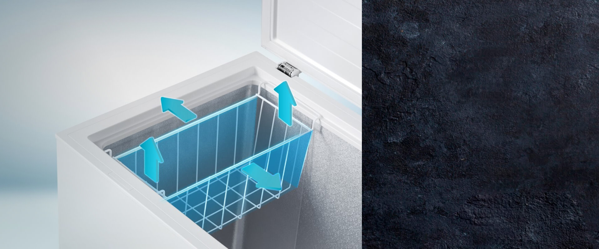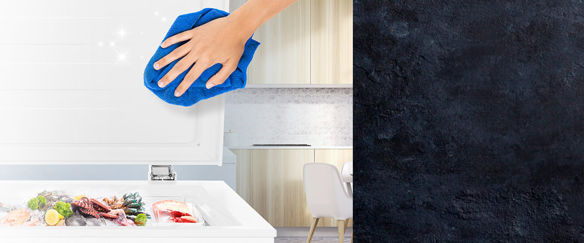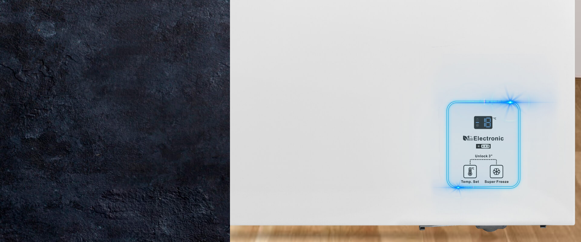 В отличие от традиционных дверей морозильных ларей дверь с ровной поверхностью идеально вписывается в современный интерьер и отличается стильным минималистичным дизайном. Удобная конструкция позволяет легко очищать дверь, так как отсутствуют труднодоступные зоны на углах, что экономит ваше время и усилия.