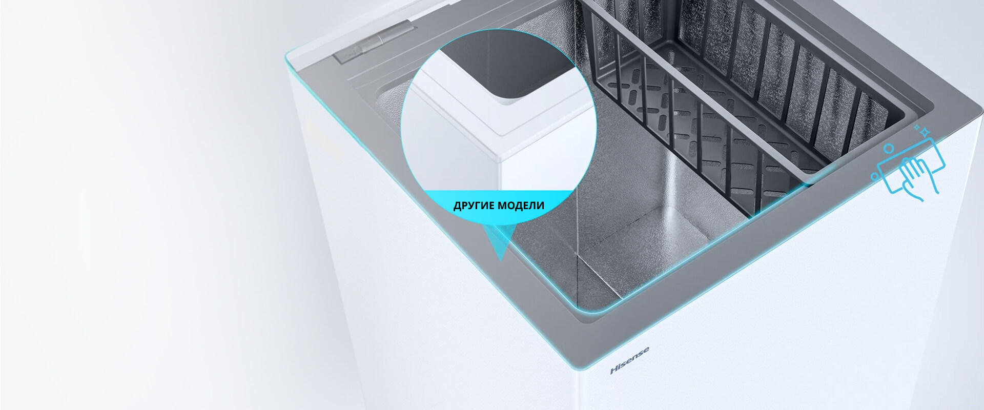 Более широкая утопленная ручка обеспечивает удобный хват и легкое открытие двери морозильного ларя.