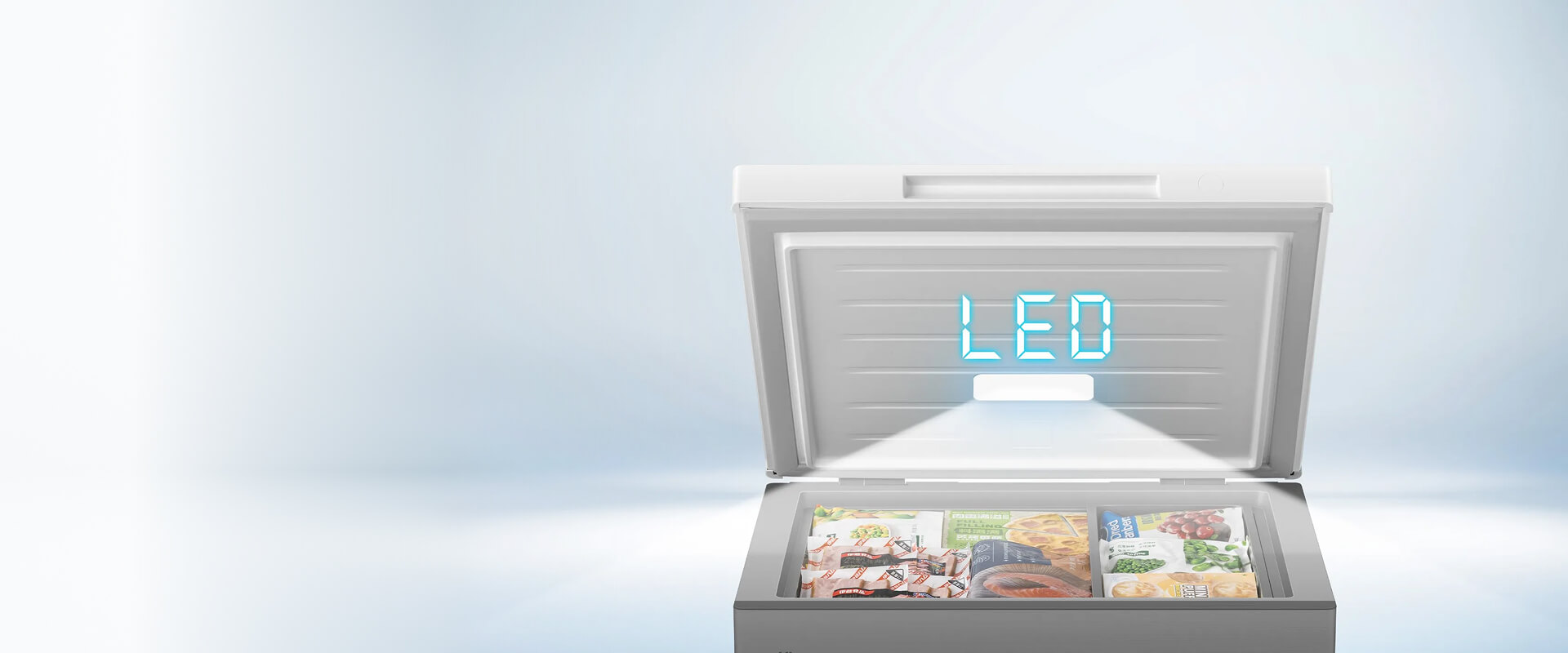 Более широкая утопленная ручка обеспечивает удобный хват и легкое открытие двери морозильного ларя.