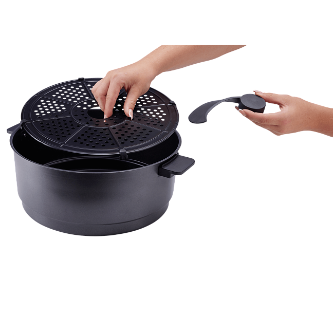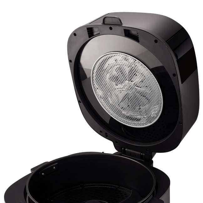 Эта аэрофритюрница Hisense оснащена специальной лопаткой, которая автоматически перемешивает и переворачивает продукты во время жарки. Помимо 4 автопрограмм с перемешиванием, возможно вручную включать / выключать работу лопатки или вынуть ее из корзины. В результате пища будет приготовлена равномерно — нежная внутри и хрустящая снаружи, а главное — практически без вашего участия.