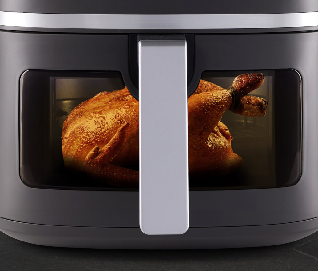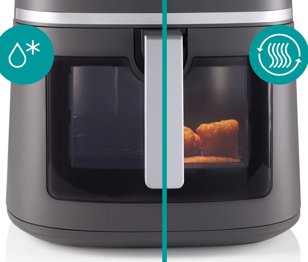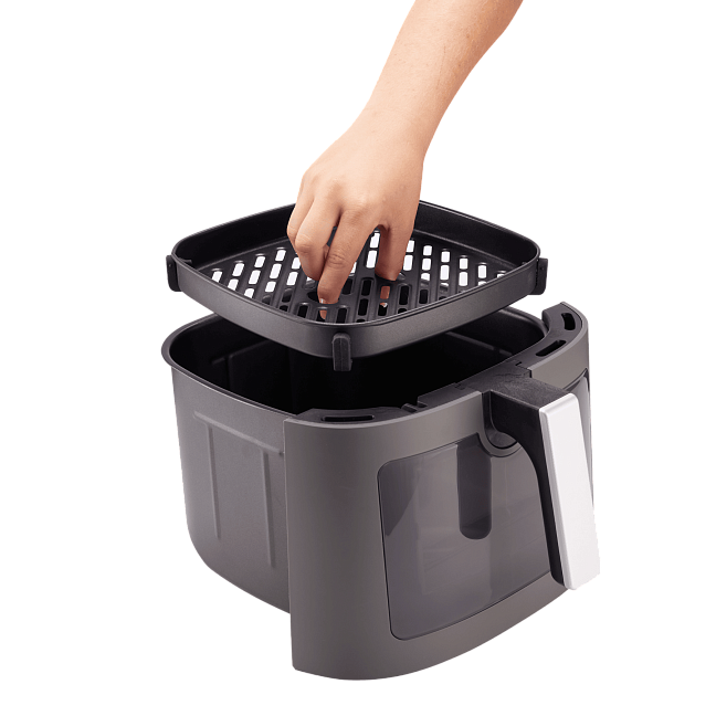 Благодаря прозрачному окошку вы можете полностью контролировать процесс приготовления и отслеживать, готово блюдо или нет. Вам даже не нужно открывать аэрофритюрницу, чтобы контролировать процесс, а значит, нет потерь горячего воздуха и не нарушается цикл приготовления.
