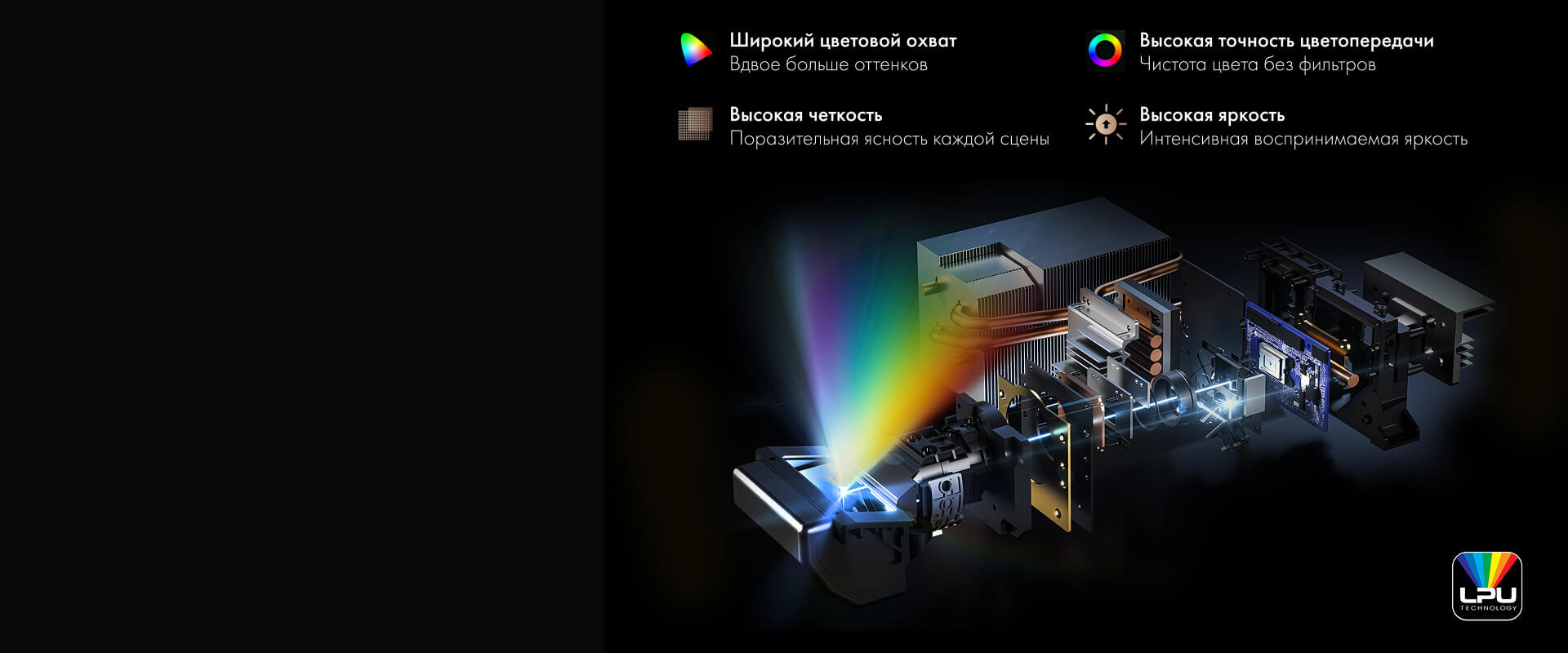 Игры предстают во всей своей красе. Специально разработанный цифровой блок LPU™ 2.0 использует передовой трехлазерный источник света (красный, синий и зеленый), обеспечивая сверхреалистичные цвета с широким охватом и высокой точностью. В режиме реального времени умные алгоритмы Pro Al оптимизируют яркость, тонко настраивают контрастность и устраняют шумы.