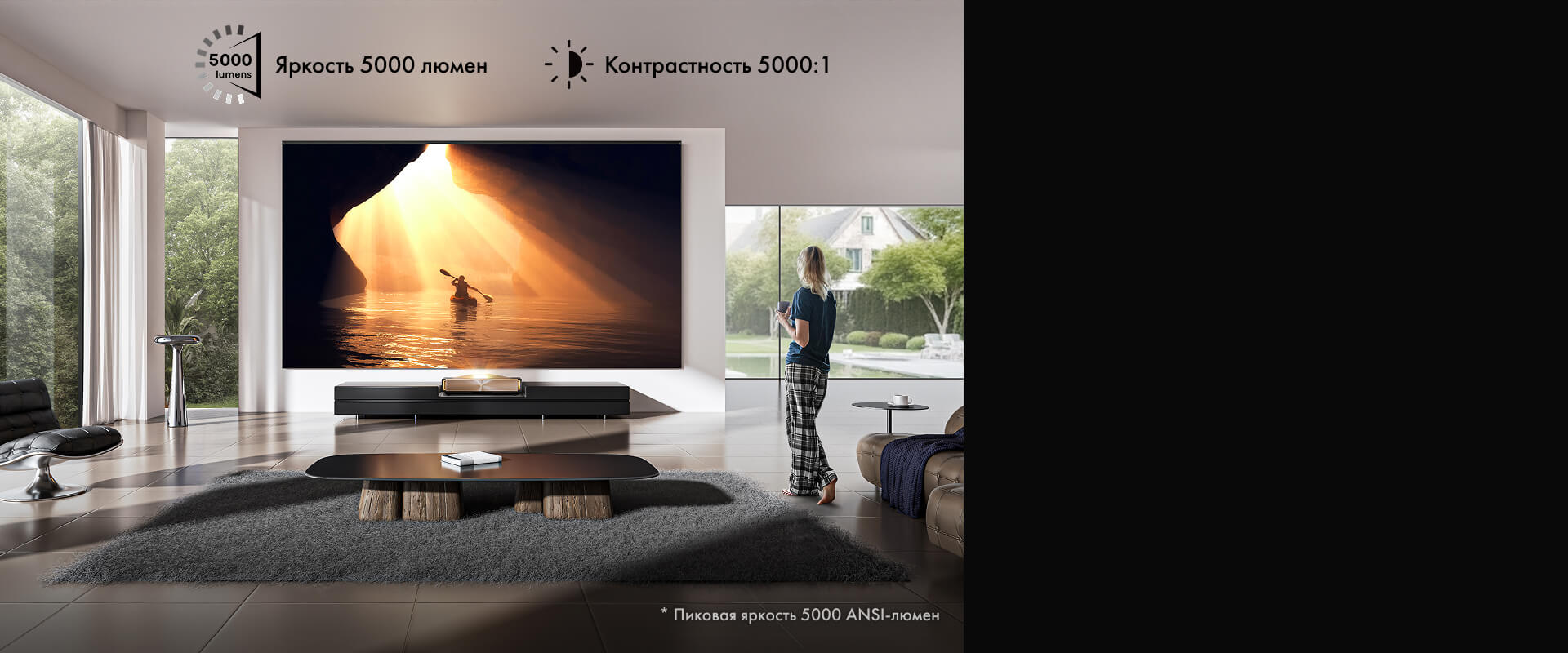 Благодаря яркости 5000 люмен и контрастности 5000:1 каждый кадр становится более выразительным и захватывающим. Точная регулировка света гарантирует глубину,
