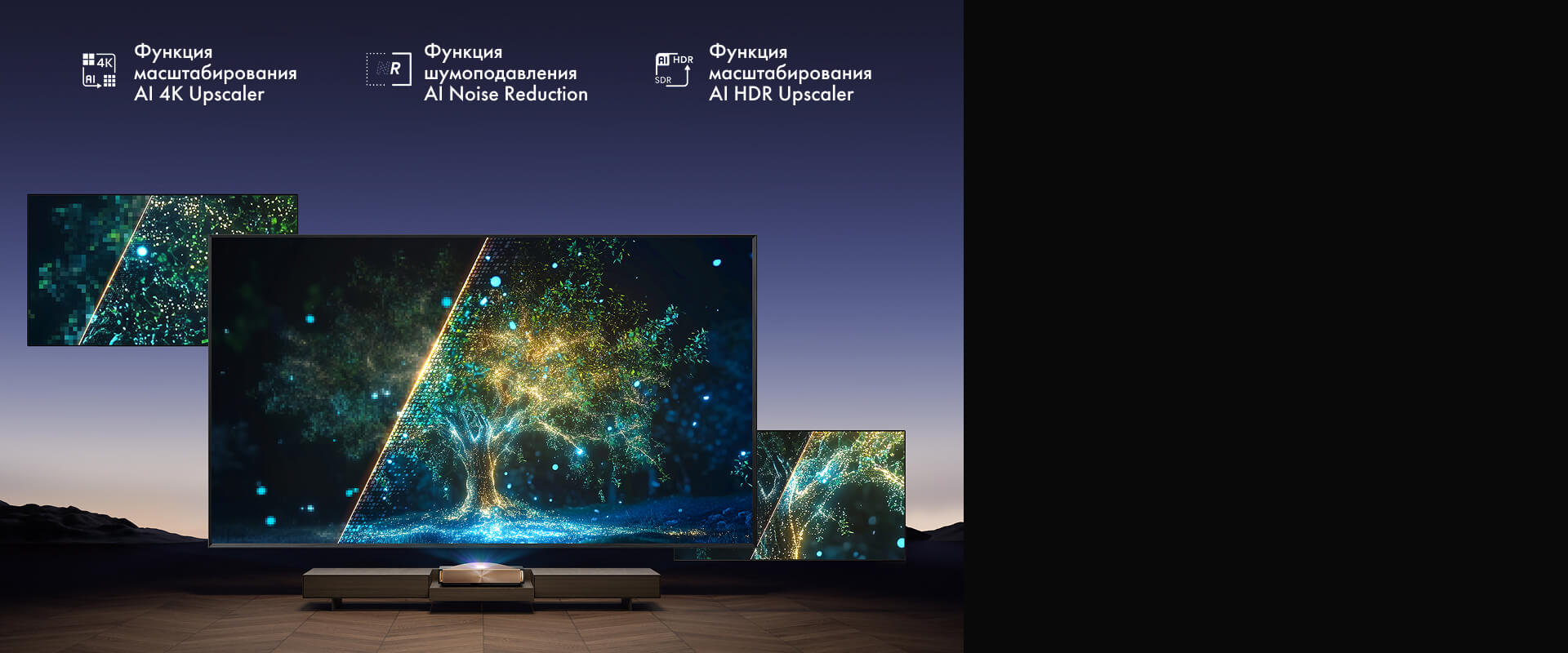 Интеллектуальные функции — от апскейлинга и шумоподавления до HDR‑оптимизации — в режиме реального времени оптимизируют контрастность, цветопередачу и уровень яркости. Каждый кадр выглядит ярче, детальнее, идеальнее.