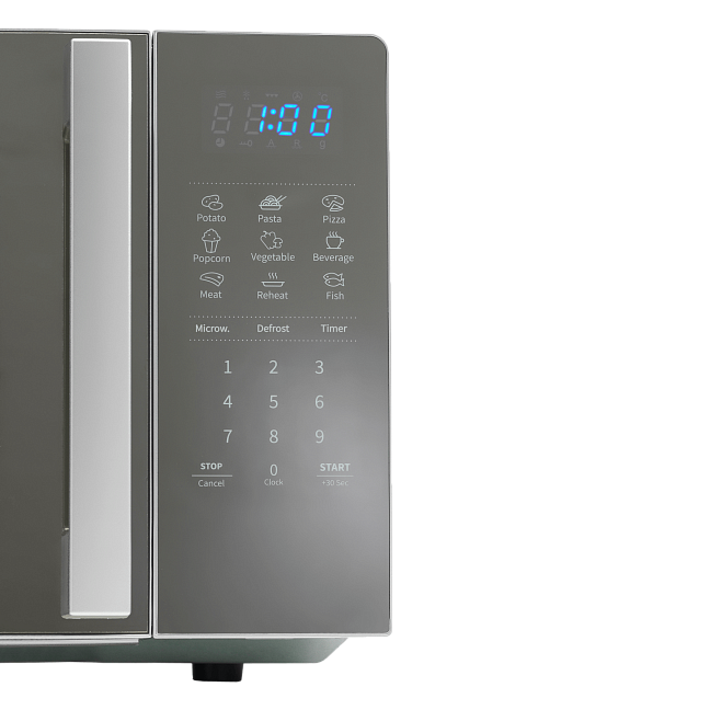 Микроволновая печь позволяет быстро разогревать еду одним прикосновением. При мощности микроволн 100% продукты готовятся и разогреваются гораздо быстрее. Нажмите кнопку с цифрой от 1 до 6 на панели управления, и приготовление сразу начнется при мощности микроволн 100%. Каждая цифра обозначает время приготовления в минутах (1-6 минут).