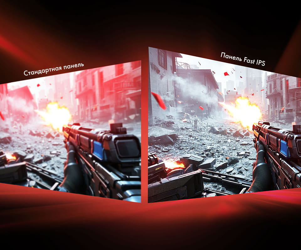 Игровой монитор с панелью Fast IPS гарантирует плавный геймплей. Сверхбыстрый отклик обеспечивает четкое изображение без размытия.