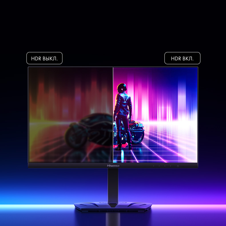 Профессионально сертифицированная, улучшенная технология отображения HDR400 создаёт естественный для глаз визуальный эффект при просмотре. Естественные и яркие сцены, изумительно чёткие детали — независимо от того, в тёмном или светлом помещении находится пользователь, — приглашают вас погрузиться в мир игры.