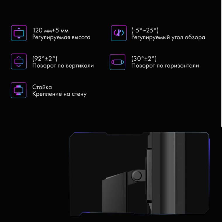 Удобная регулировка монитора с несколькими степенями свободы позволит настроить ваше игровое пространство так, как вы этого хотите, для максимального удобства.