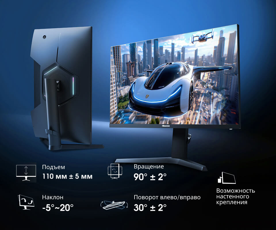 Гибкая эргономичная регулировка позволяет настроить монитор под любой рост и положение, обеспечивая идеальный угол обзора и снижая нагрузку на шею. Ультрадинамическая RGB-подсветка с гало-эффектом превращает пространство вокруг монитора в яркую игровую зону, задавая тон каждой баталии.