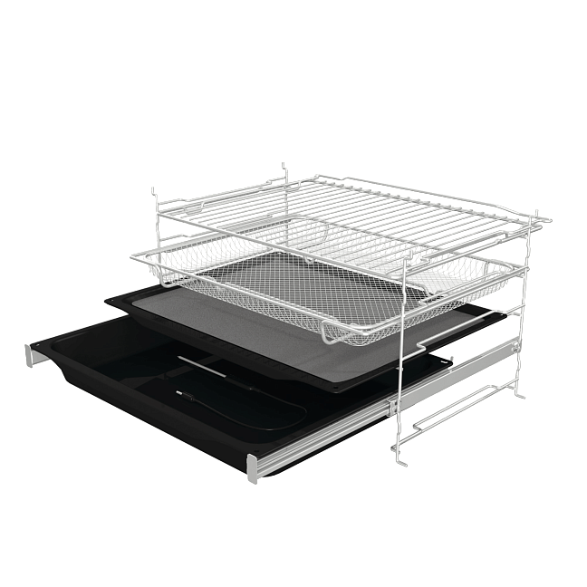 Пиролитические телескопические направляющие можно оставлять в духовке во время пиролиза. Эти жаростойкие телескопические направляющие облегчают извлечение и установку продуктов в духовку, так как они выдвигаются с минимальными усилиями и надежно выдерживают вес блюда в полностью выдвинутом состоянии.