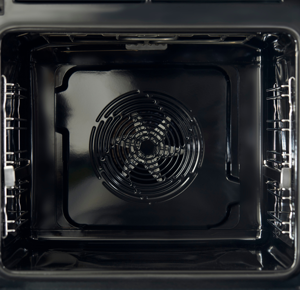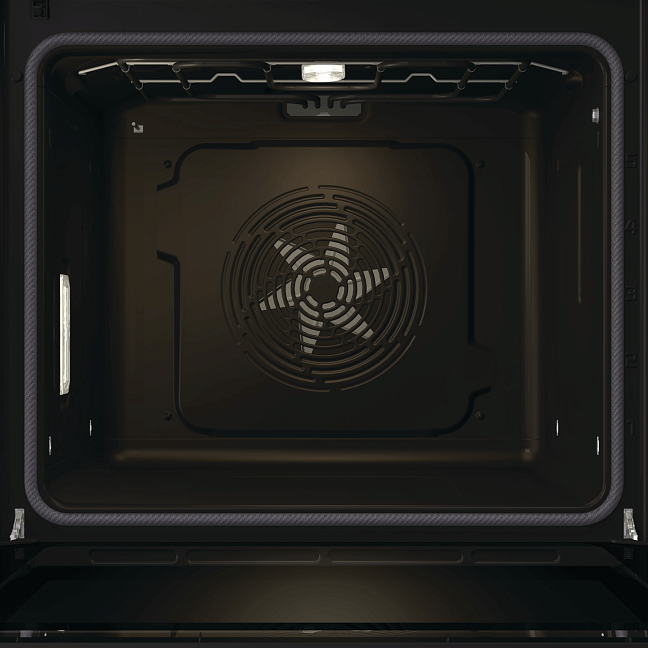 Не стоит беспокоиться об очистке духовки. Она очищается сама благодаря специальной каталитической крышке вентилятора, которая расположена на задней стенке камеры. Когда во время приготовления температура в духовке достигает 85°С, каталитическая крышка начинает поглощать и расщеплять жир и загрязнения, оставляя стенки камеры чистыми.