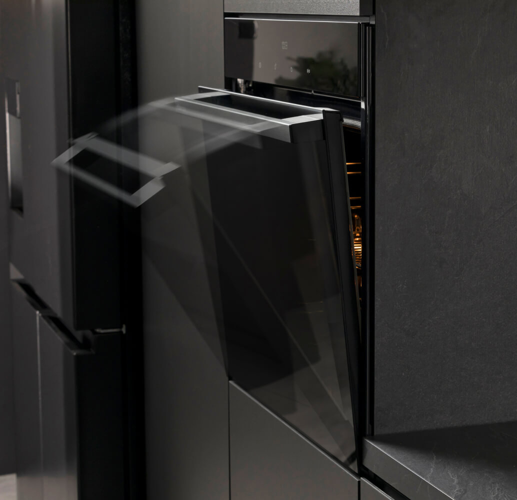 Открывайте и закрывайте дверцу духовки без усилий и шума. Достаточно легкого прикосновения, и дверца полностью и плавно закроется без хлопка.