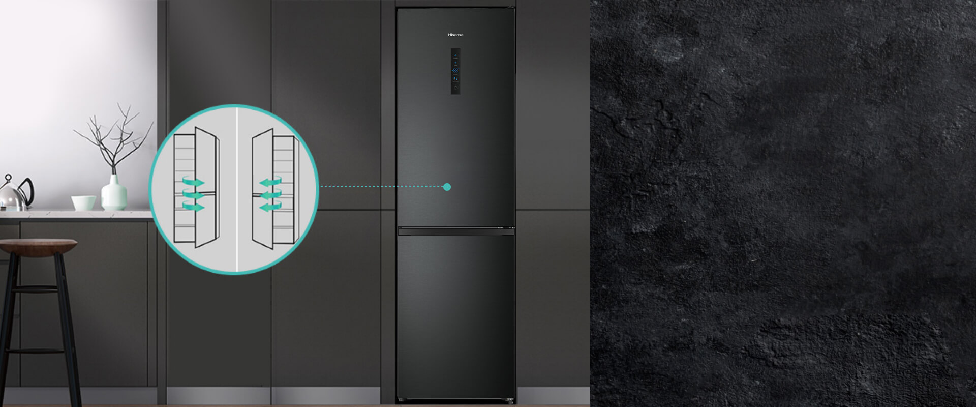 Холодильник Hisense с нижней морозильной камерой — ваш эксперт по хранению продуктов. Благодаря открыванию двери на 90° и малой глубине корпуса он идеально встраивается в любую кухню. Инновационный ящик 0° Cooling Plus идеально подходит для хранения мяса, рыбы и молочных продуктов, так как в нем поддерживается температура на 2-3°C ниже, чем в остальной части холодильного отделения.