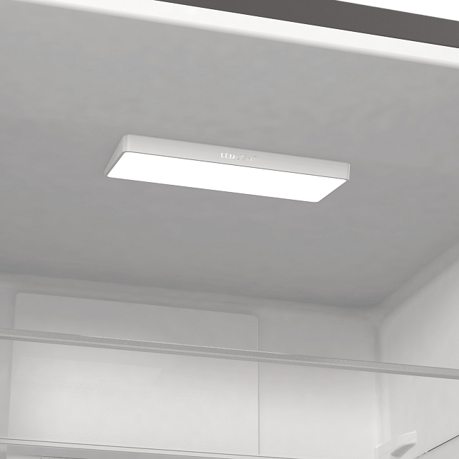 Светодиодное освещение ярче обычных ламп накаливания, что позволяет видеть содержимое вашего холодильника более четко, а также экономить электроэнергию.