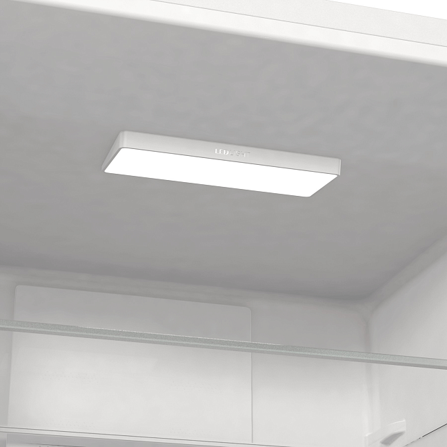Светодиодное освещение ярче обычных ламп накаливания, что позволяет видеть содержимое вашего холодильника более четко, а также экономить электроэнергию.