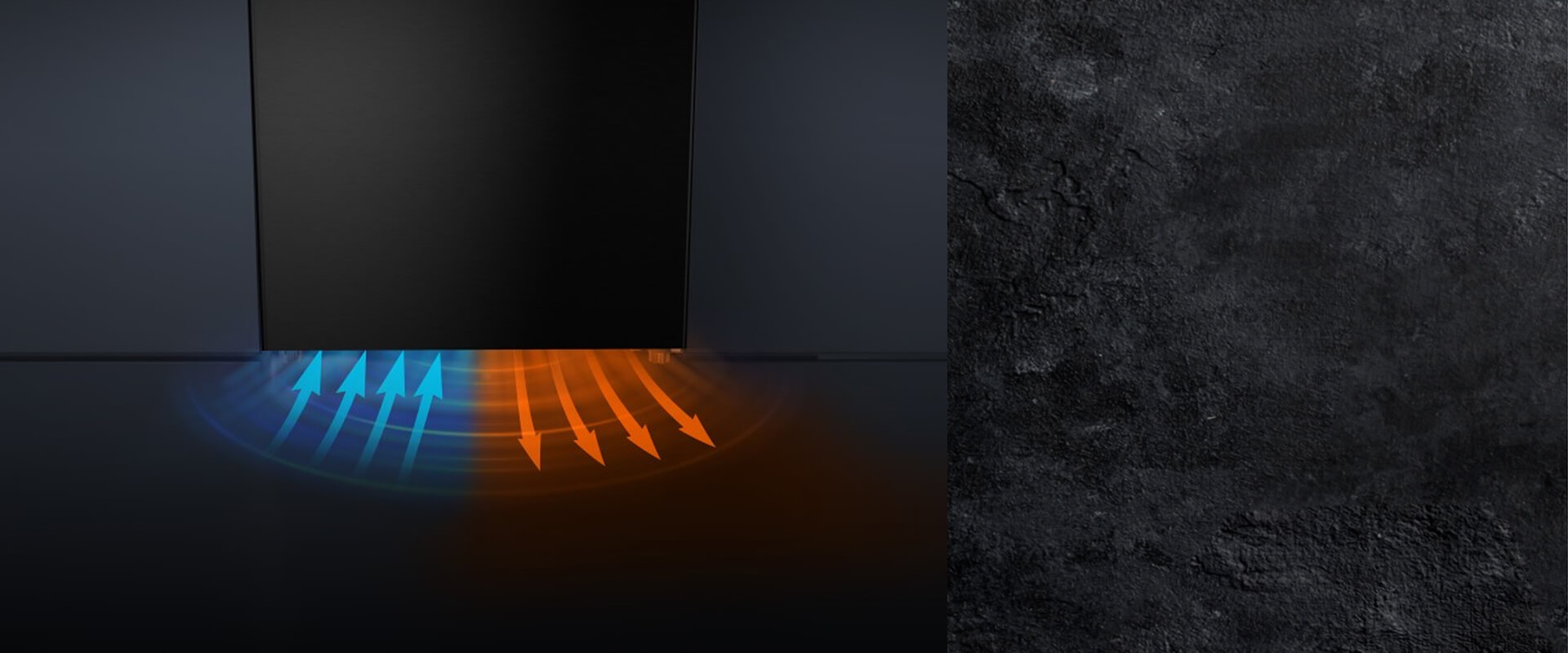 Продуманная система охлаждения в цоколе холодильника разделяет потоки холодного и теплого воздуха, что повышает энергоэффективность и позволяет встраивать холодильник с минимальными зазорами от стен или мебели сверху и по бокам.