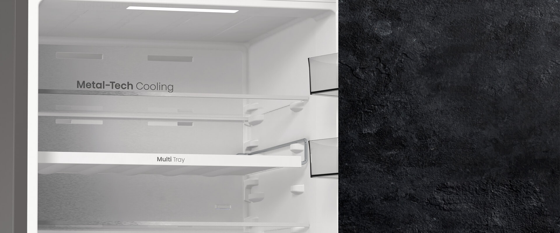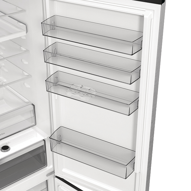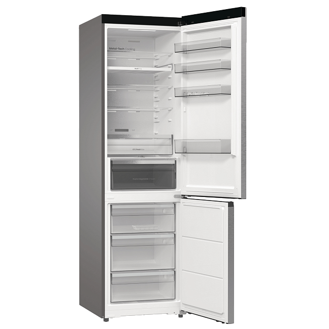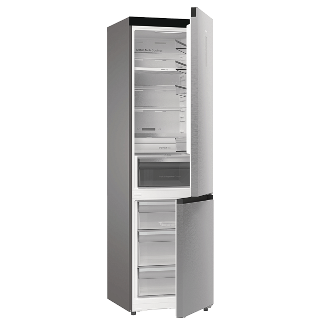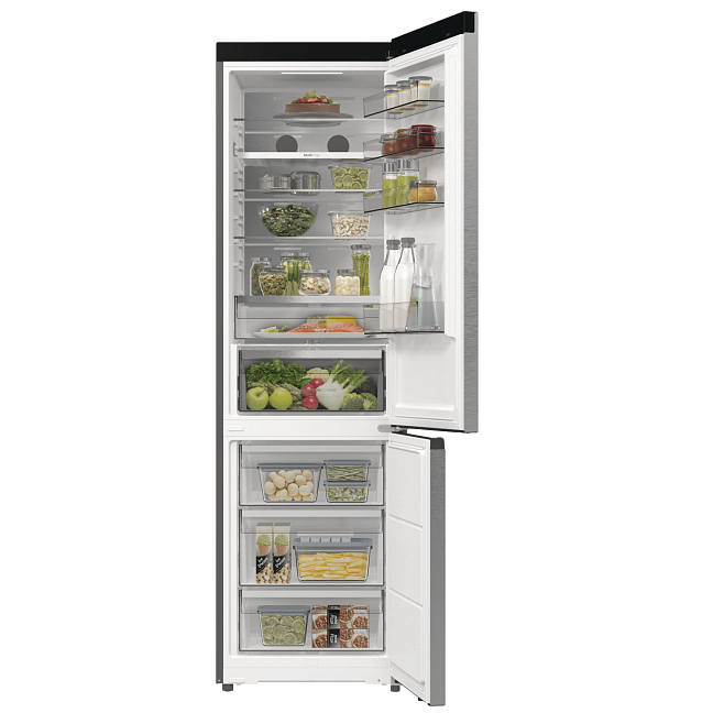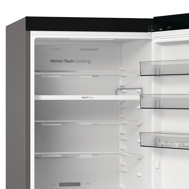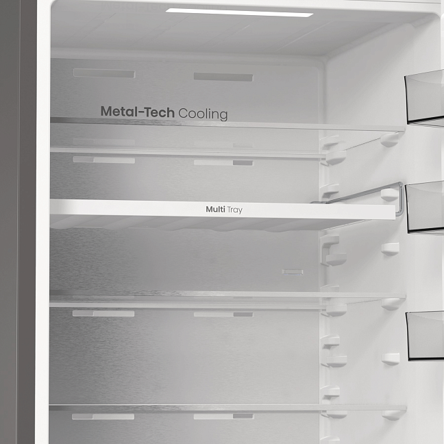 Задняя стенка холодильника выполнена из металла, который равномерно передает холод всей поверхностью. Сочетание передовых технологий обеспечивает идеальную температуру и уровень влажности во всем холодильнике.