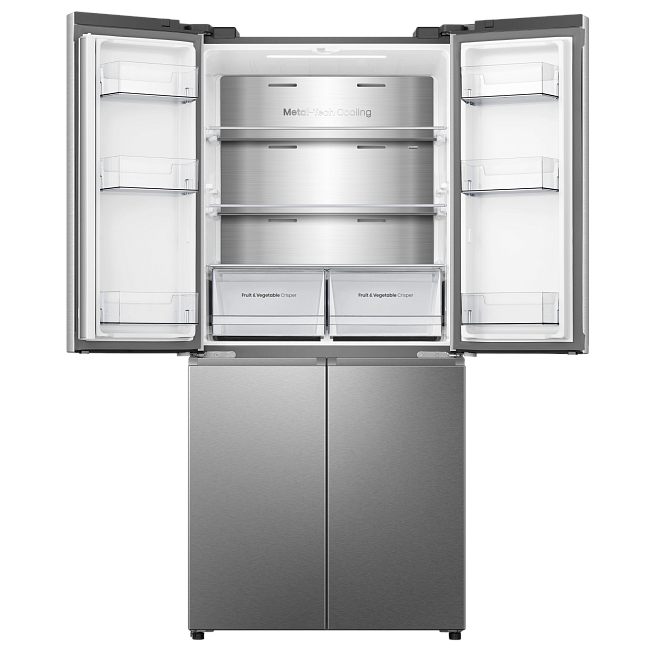 Технология Total No Frost от Hisense обеспечивает равномерную циркуляцию холодного воздуха по всей морозильной камере, предотвращая образование инея и избавляя от необходимости размораживать холодильник вручную.