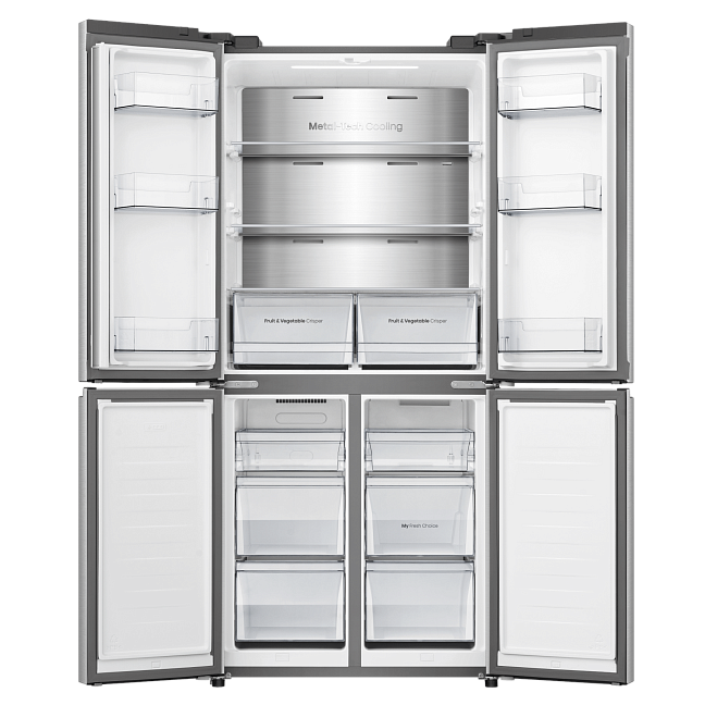 Задняя стенка холодильника покрыта нержавеющей сталью, что обеспечивает равномерное распределение холодного воздуха изнутри наружу. Такое сочетание передовых технологий обеспечивает идеальный температурный режим, предотвращая потерю холодного воздуха и образование инея в холодильнике.