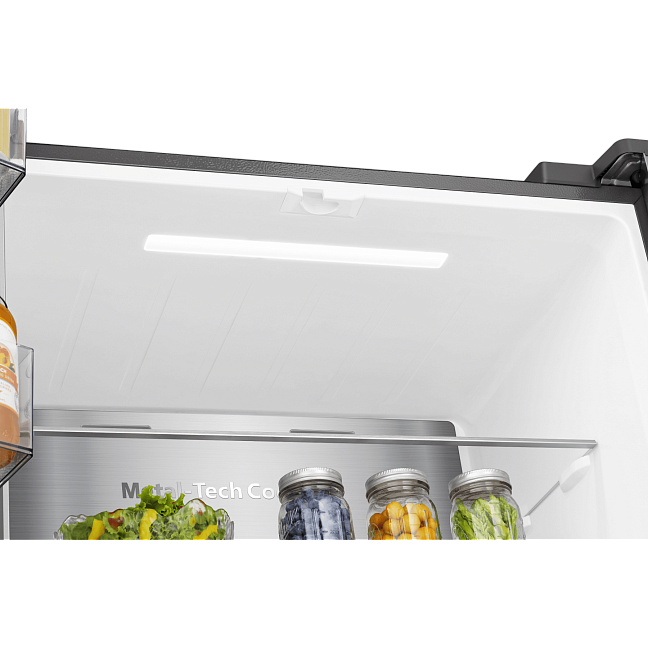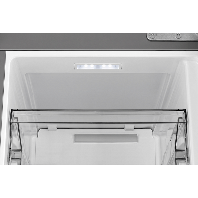 Продуманная система охлаждения в цоколе холодильника разделяет потоки холодного и теплого воздуха, что повышает энергоэффективность и позволяет встраивать холодильник с минимальными зазорами от стен или мебели сверху и по бокам.