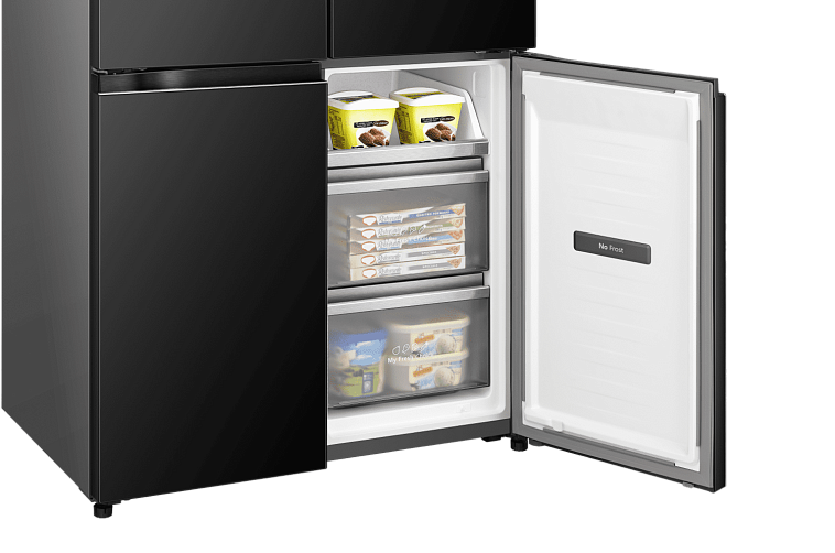 Технология Total No Frost от Hisense обеспечивает равномерную циркуляцию холодного воздуха по всей морозильной камере, предотвращая образование инея и избавляя от необходимости размораживать холодильник вручную.