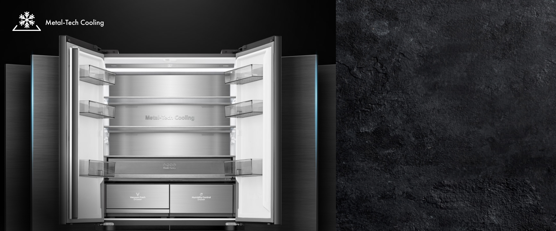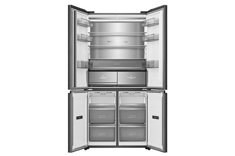 Задняя стенка холодильника покрыта нержавеющей сталью, что обеспечивает равномерное распределение холодного воздуха изнутри наружу. Такое сочетание передовых технологий обеспечивает идеальный температурный режим, предотвращая потерю холодного воздуха и образование инея в холодильнике.