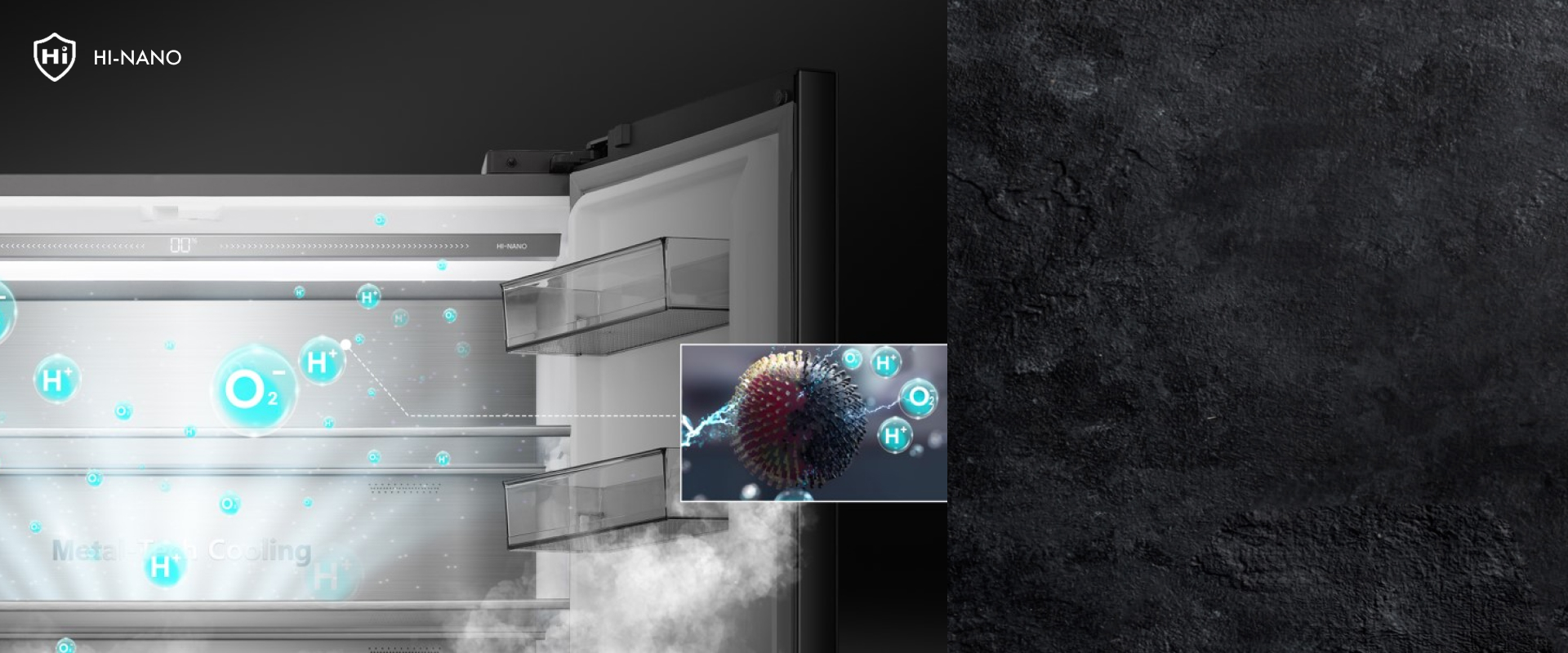 Используя высокую концентрацию положительных и отрицательных ионов, технология HI-NANO уничтожает бактерии и вирусы (включая COVID-19) и устраняет неприятные запахи, превращая холодильник в безопасное и чистое место для хранения продуктов. Помимо защиты от бактерий и вирусов, технология позволяет дольше сохранять свежесть продуктов, сокращая расходы и отходы.