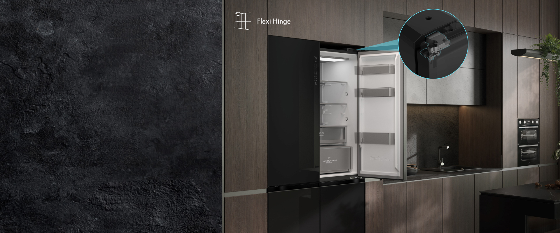 Благодаря новой технологии Flexi Hinge появилась возможность открывать дверцу на 103°, что обеспечивает легкий доступ к продуктам внутри холодильника.