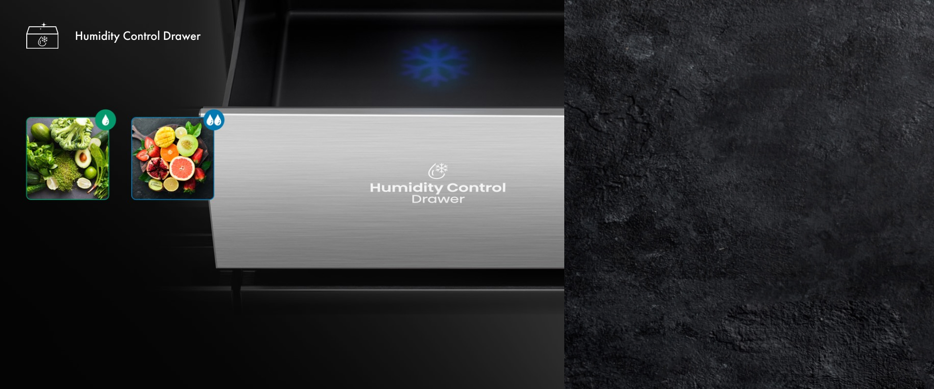Ящик для овощей и фруктов с системой регулировки влажности позволяет вручную регулировать влажность в ящике в соответствии с различными требованиями к хранению продуктов и, таким образом, сохранять фрукты и овощи свежими, хрустящими и вкусными дольше, чем в традиционном холодильнике.
