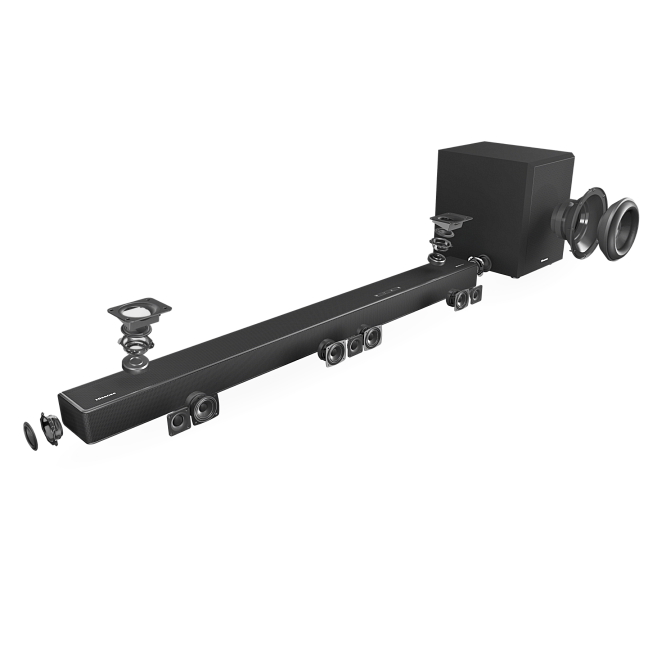 Оптимальный вариант: подключение к телевизорам Hisense UHD, мощные динамики и технология Dolby Atmos/Dts:X оставляют невероятные впечатления от звука, превосходящие самые смелые ожидания.