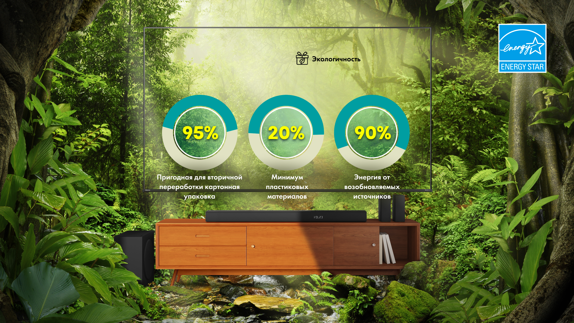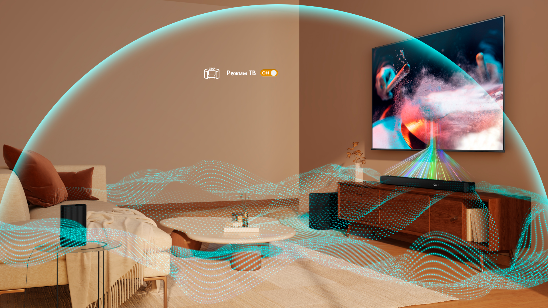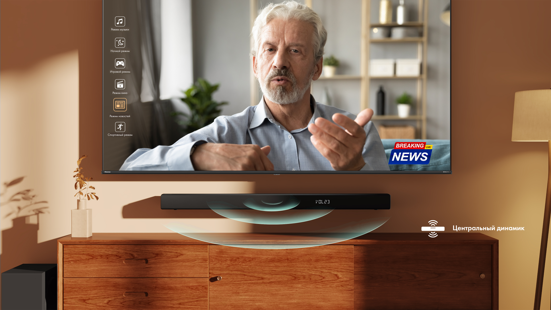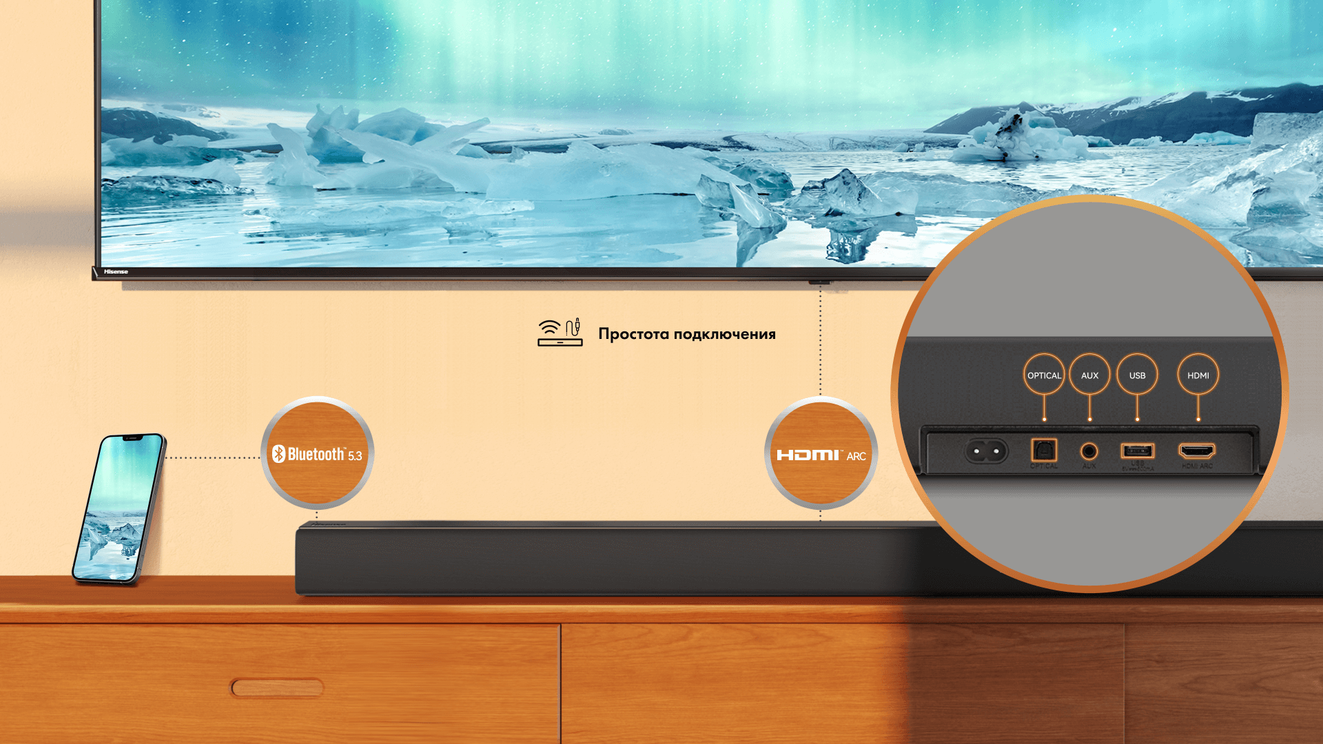 При сопряжении с Hisense TV в ТВ-режиме динамики саундбара целиком раскрывают свой потенциал и обеспечивают непревзойденное аудиальное восприятие с созданием иммерсивного звукового окружения.