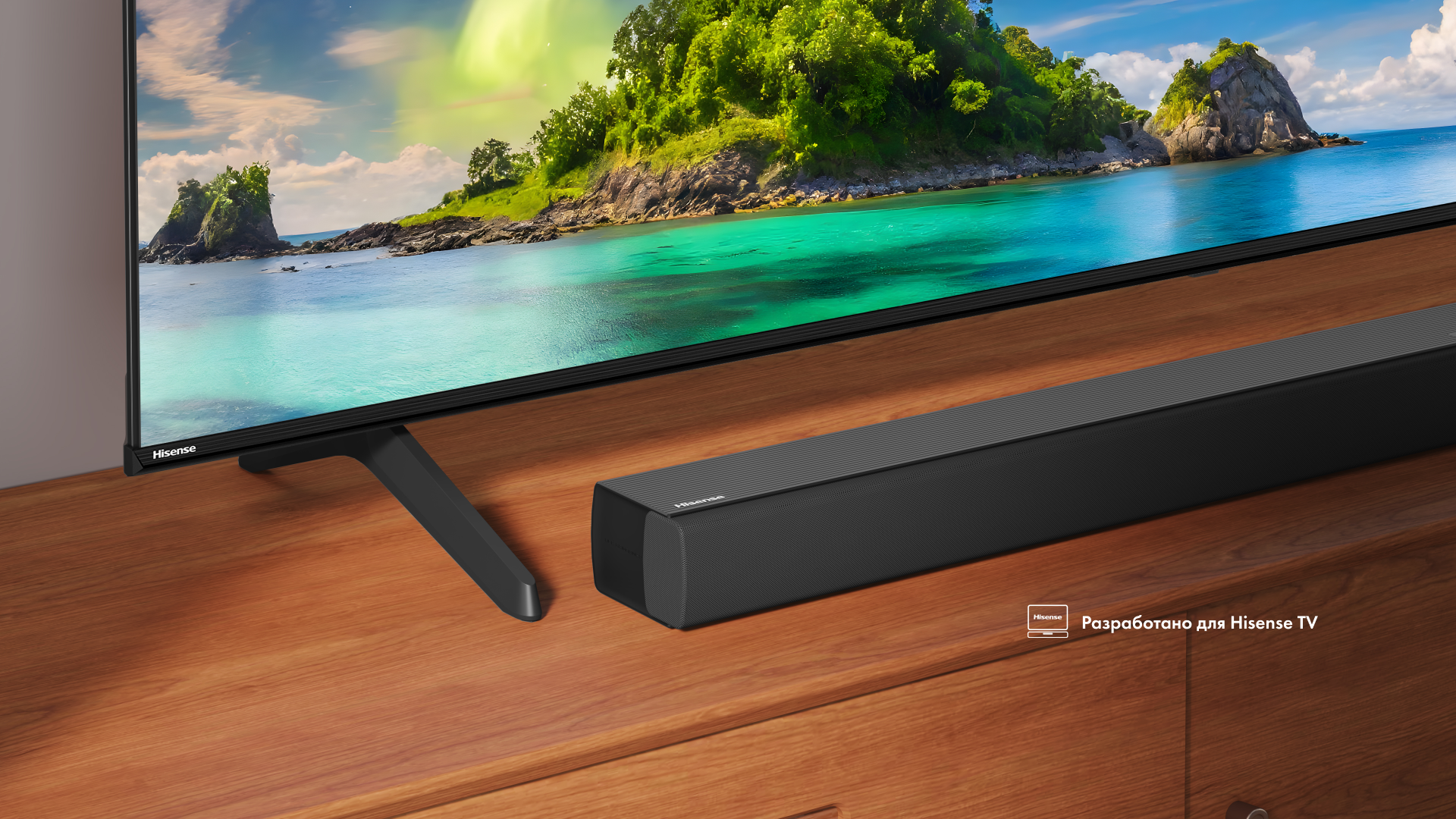 Саундбар HS5100 с его четко подобранными габаритами и компактной конструкцией прекрасно сочетается с телевизорами.