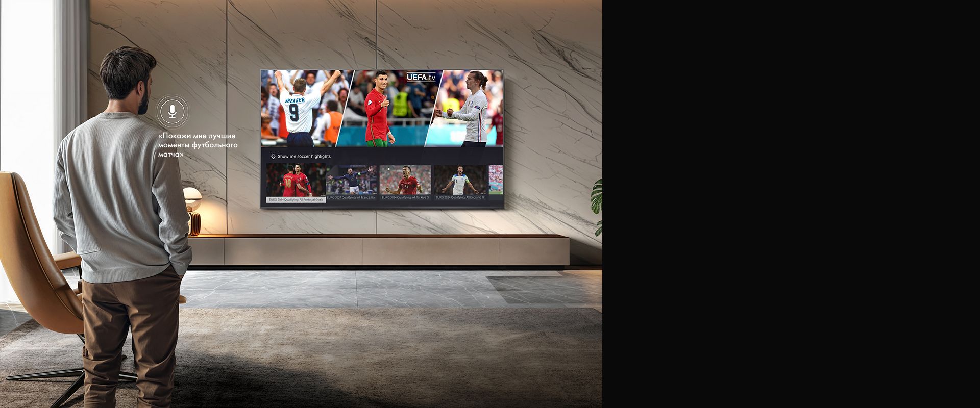 Почувствуйте оглушающий грохот и уловите стремительный ритм каждой композиции без подключения внешнего оборудования. Встроенный сабвуфер обеспечивает глубокий мощный бас, который исходит непосредственно из телевизора, добавляя картинке кинематографические глубину и насыщенность. Более полное гармоничное звучание привносит энергию большого экрана в фильмы, спортивные трансляции и игры.