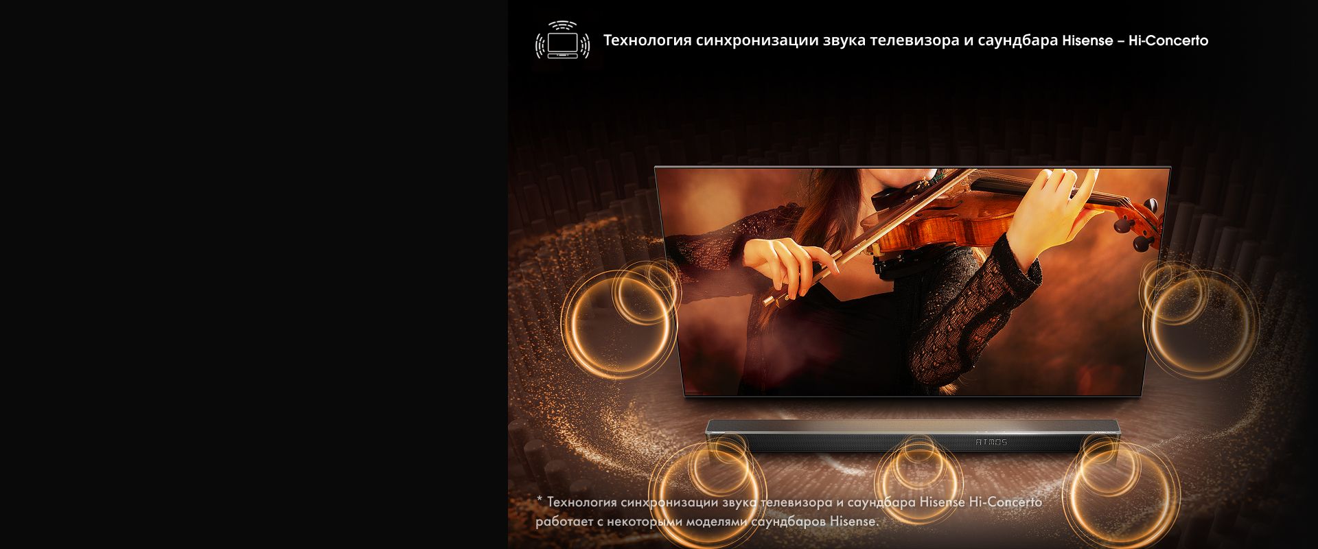 Объедините объемное звучание телевизора и саундбара. Благодаря технологии Hi-Concerto оба устройства работают в тандеме, формируя доступный домашний кинотеатр без лишних кабелей или дополнительного оборудования.