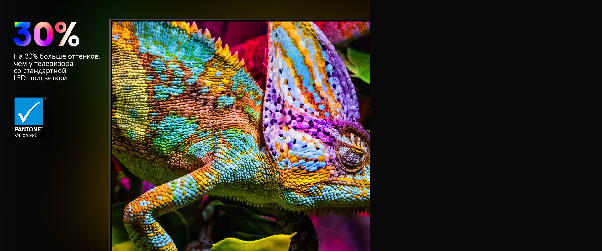 Испытайте визуальный восторг с технологией цвета Hi-QLED Color. Каждый кадр — насыщенный, естественный и красочный. Каждый оттенок — от самых нежных пастельных тонов до самых ярких оттенков — отображается с потрясающей четкостью.
