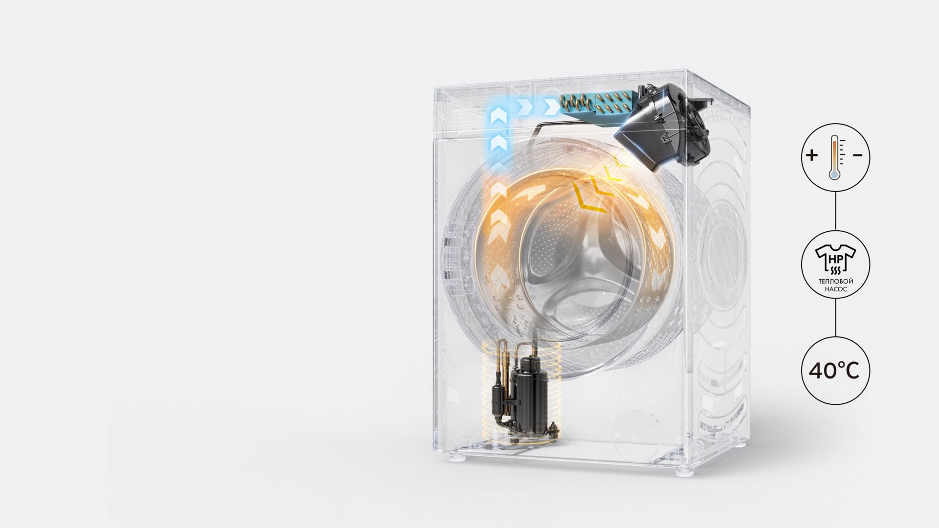 Стирально-сушильная машина с тепловым насосом — это современное решение для тех, кто ценит экологичность и деликатную заботу о вещах. Благодаря замкнутой системе теплообмена, горячий воздух удерживается внутри машины и используется повторно, что позволяет существенно экономить энергию. Интеллектуальный контроль температуры обеспечивает бережный уход за тканью, продлевая срок ее службы.