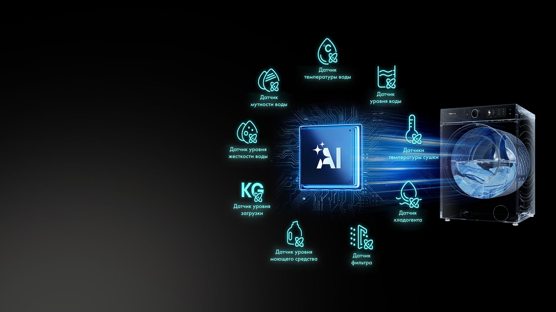 Машина оснащена 13 датчиками, которые автоматически определяют вес загрузки, степень загрязнения воды и температуру. На основе этой информации искусственный интеллект подбирает идеальный цикл стирки и сушки, оптимизируя потребление воды и электроэнергии. Датчики моющего средства и хладагента дополнительно повышают энергоэффективность, гарантируя идеальный результат без вашего участия.