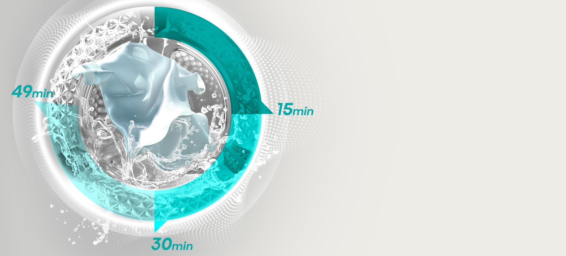 Иногда даже 49-минутная быстрая стирка слишком долго длится с учетом вашего плотного графика. С функцией сокращения программы вы можете уменьшить время стирки до 30 минут без ущерба для ее качества. А для тех, у кого совсем нет времени, мы предлагаем быструю 15-минутную программу, чтобы вы быстрее справились со стиркой.